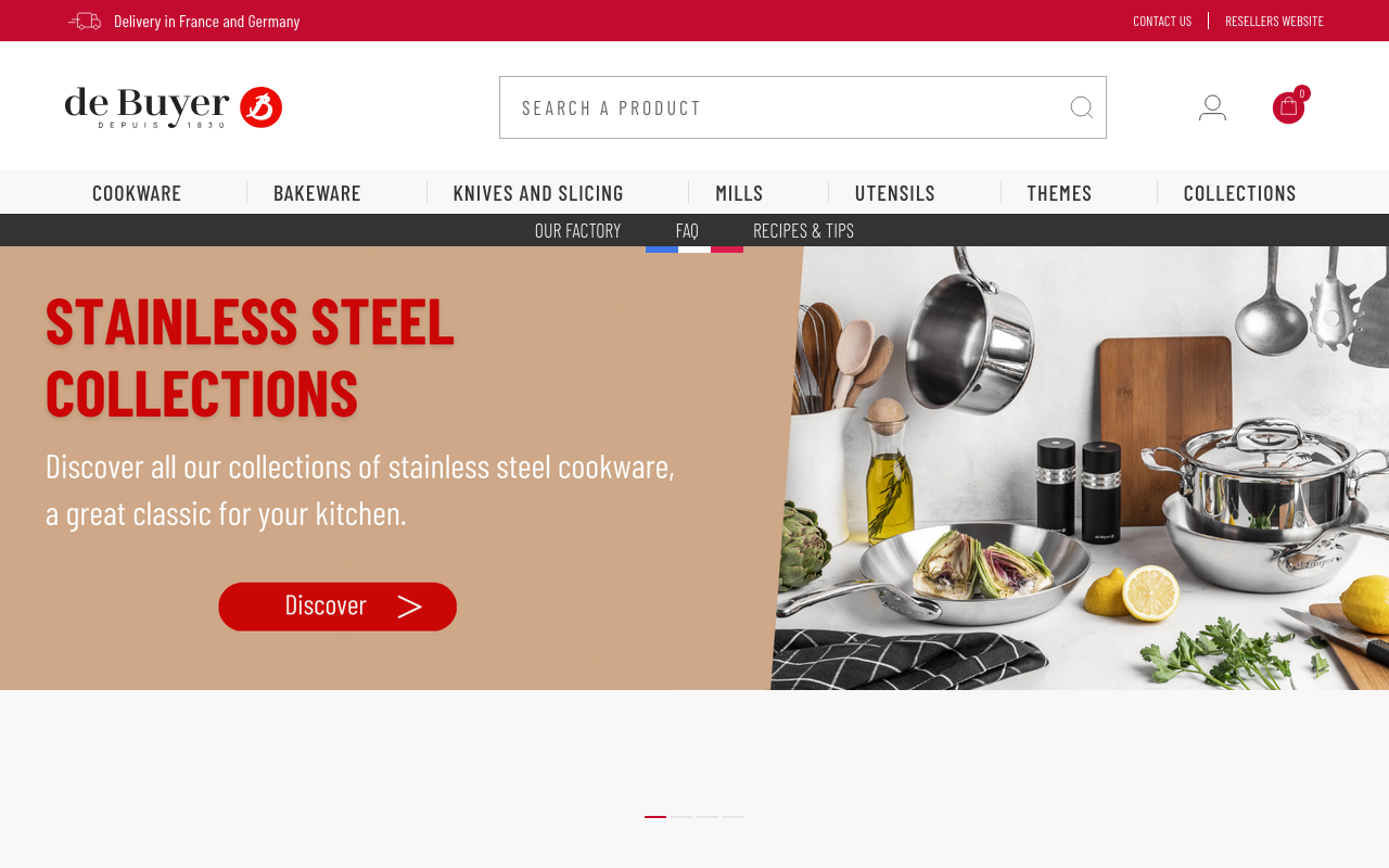 Founded in 1830, de Buyer manufactures cookware, primarily pans out of carbon steel, stainless steel or copper. They also make various baking and generally kitchen utensils, such as silicone baking moulds, knives and mandolines.